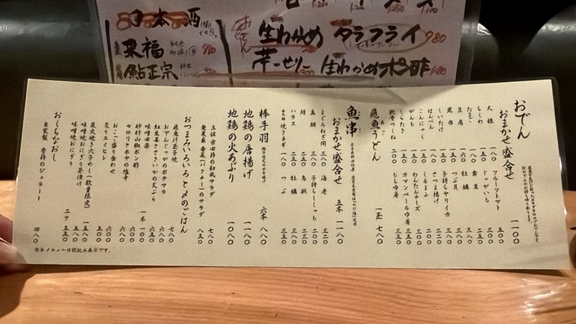 本日のおつまみメニュー