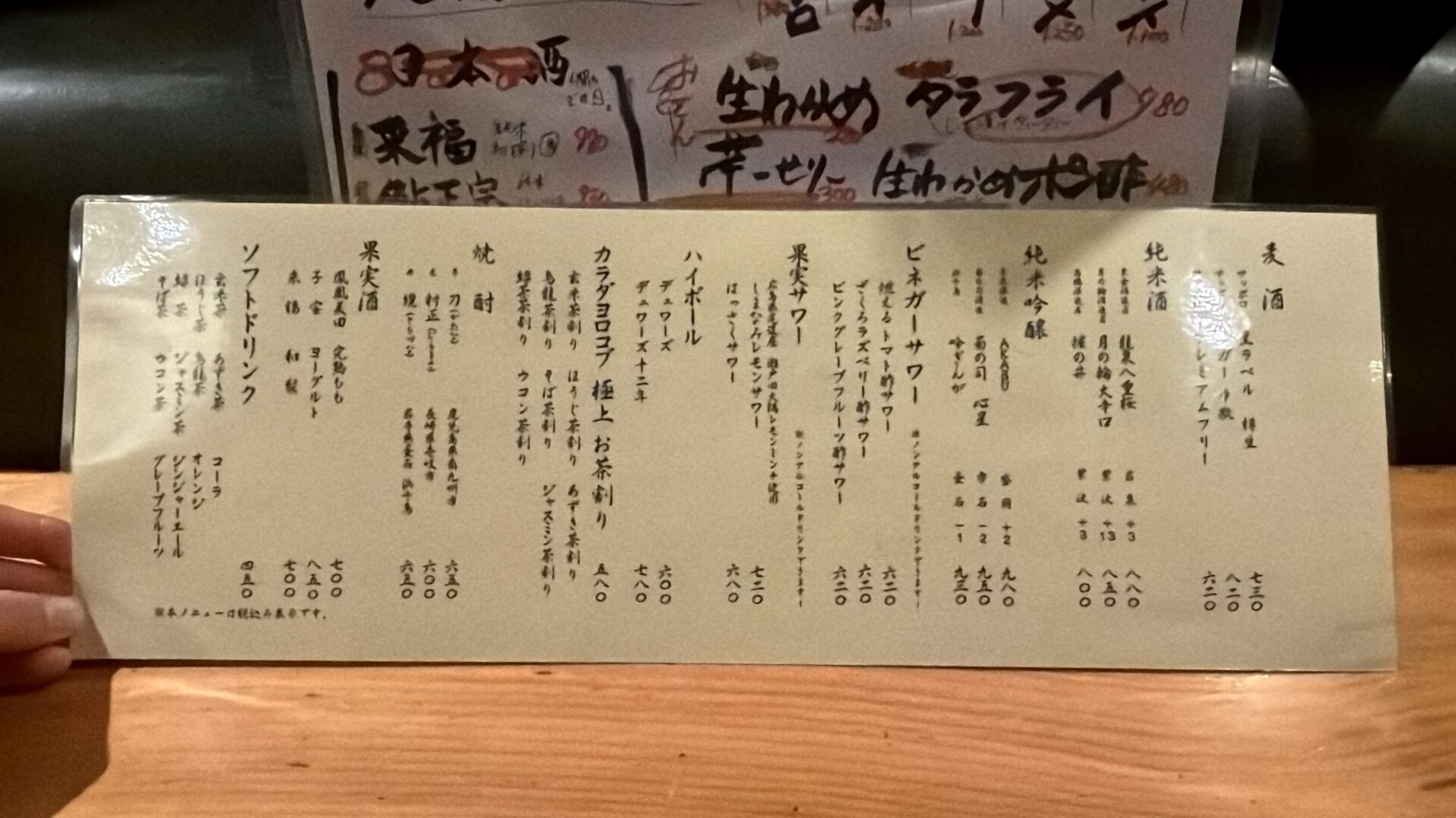 本日のお酒メニュー