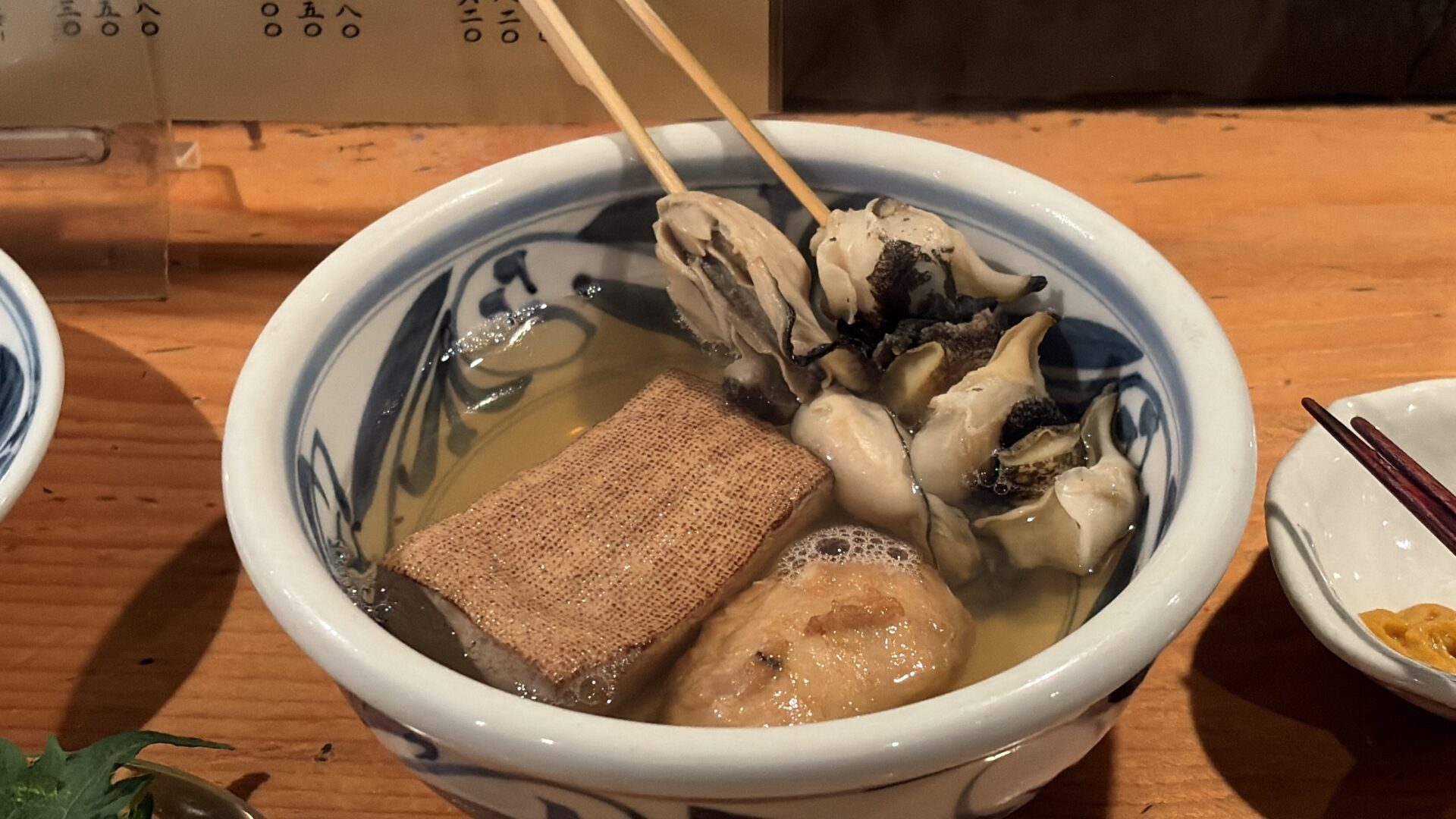 おでん:牡蠣、つぶ貝、豆腐、軟骨つくね
