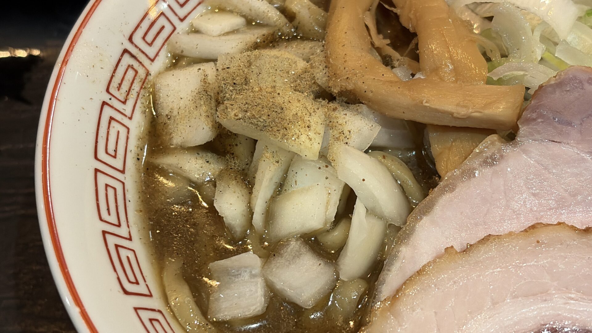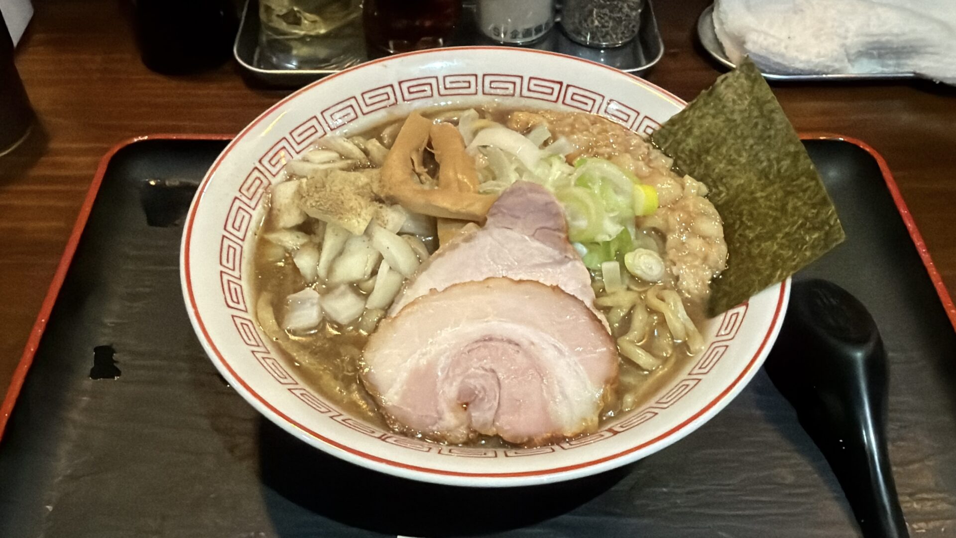 メンマ、タマネギなどトッピングが豊富。