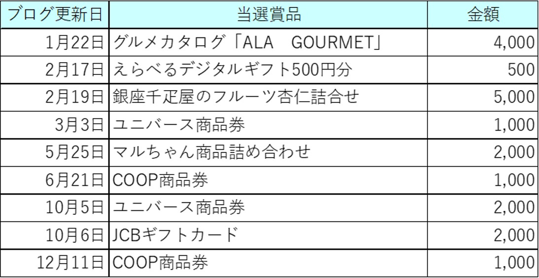 2025年の懸賞当選結果の振り返りです。