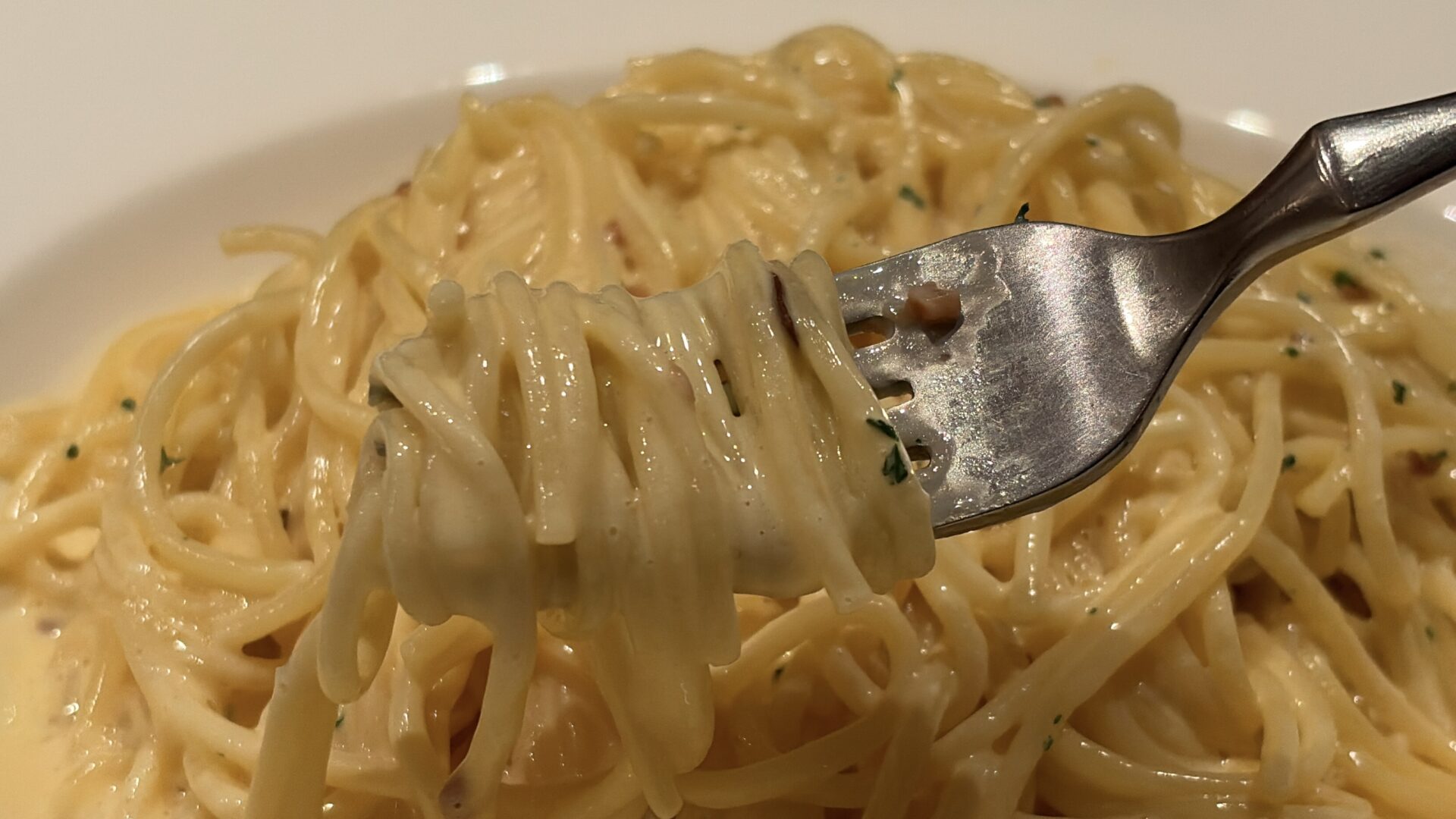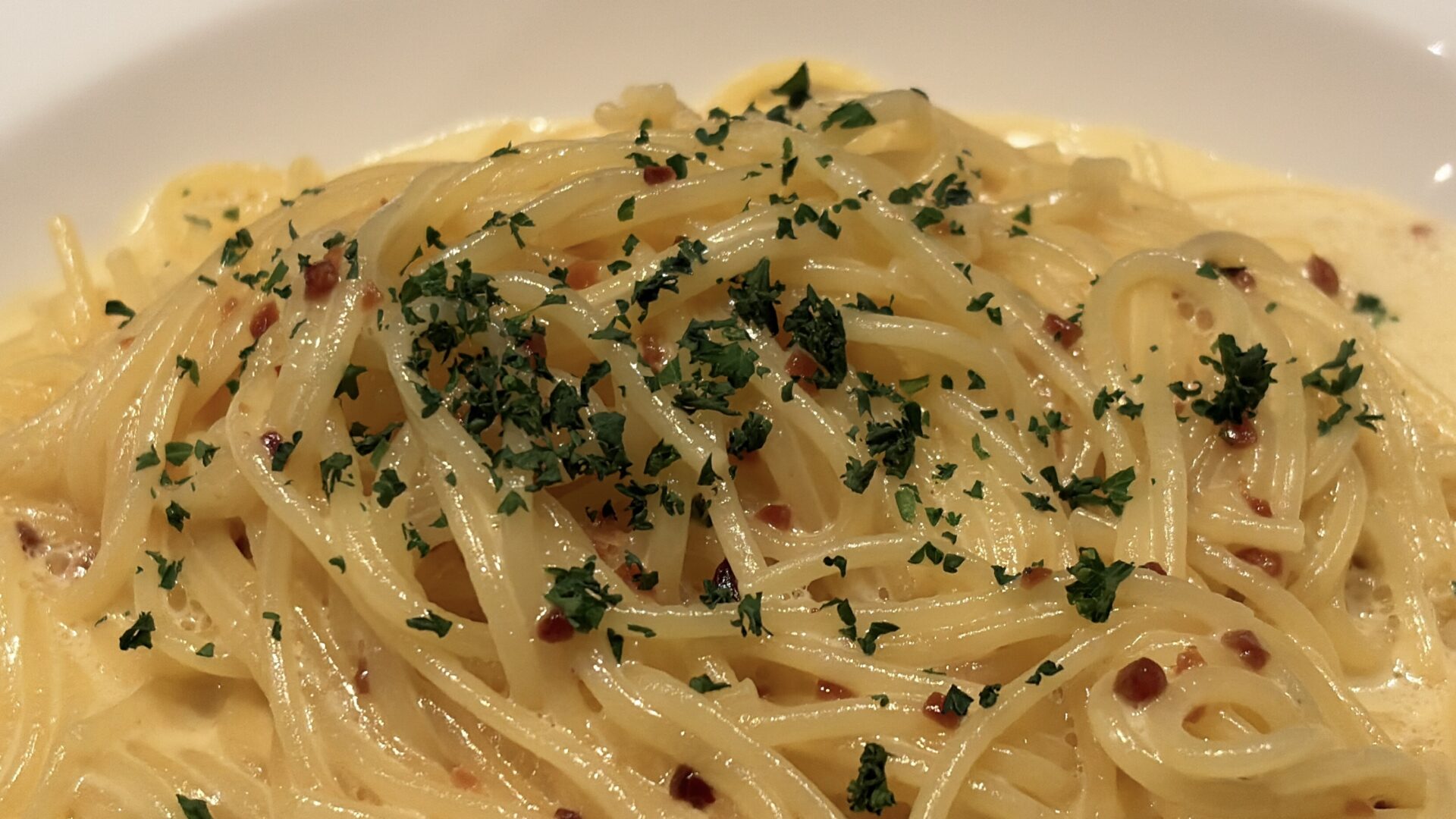カルボナーラとペペロンチーノを掛け合わせた「カルボーノ」。