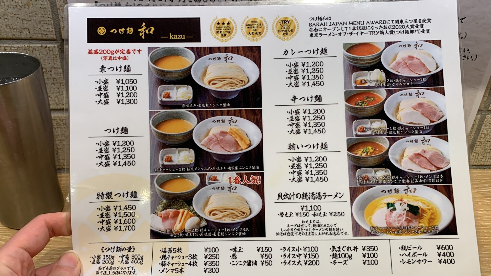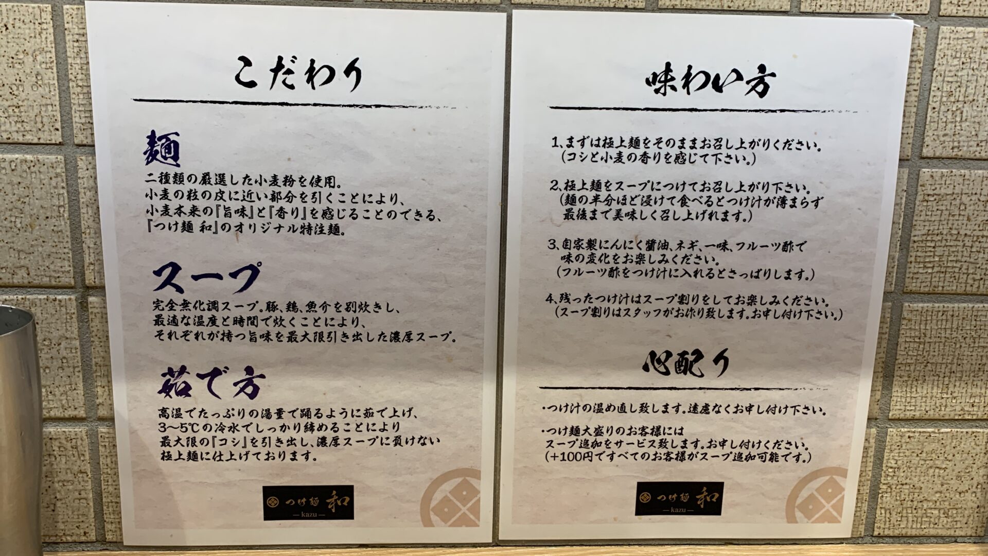 つけ麺和さんのメニューの中で